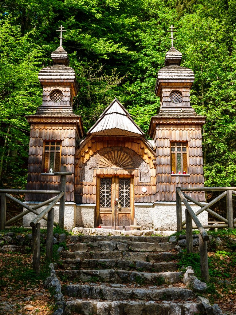The Russian Chapel (Ruska Kapelica) was built in 1916 by Russian prisoners of war during World War I. This small Orthodox church is a symbol of suffering, remembrance, and resilience, set against a stunning alpine backdrop.