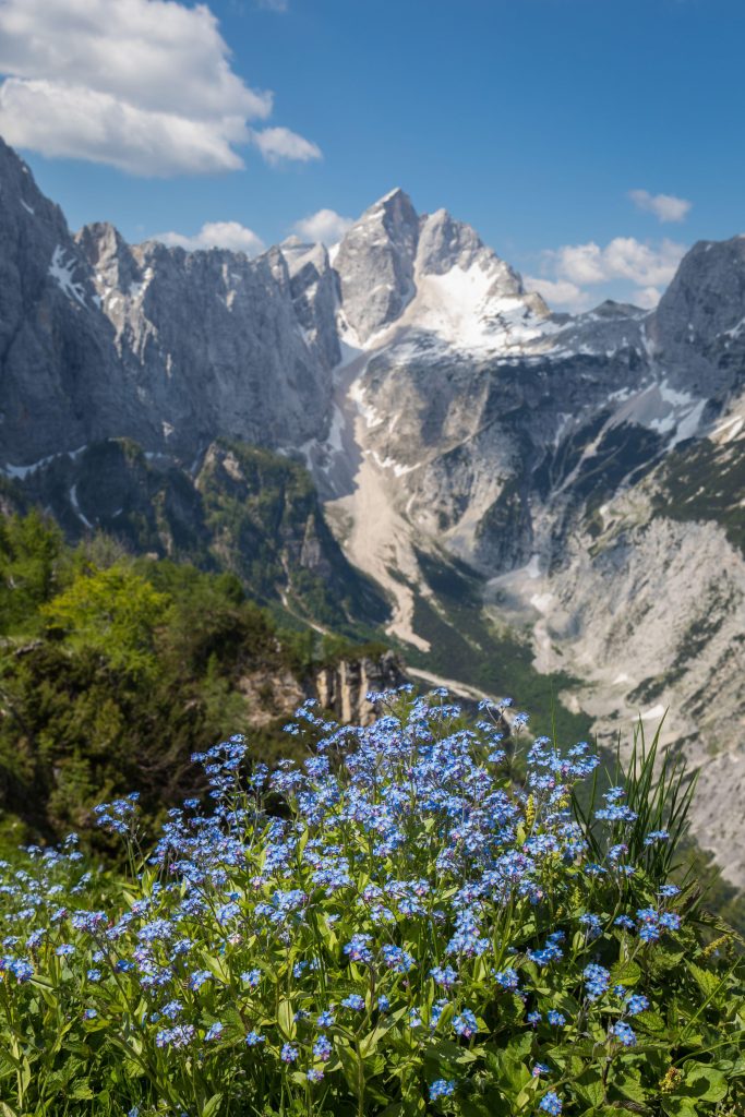 The trail offers panoramic views of the Soca Valley, surrounding peaks, and nearby alpine meadows as you ascend. Wildflowers bloom in summer, while in spring, you may encounter lingering snow patches near the top.