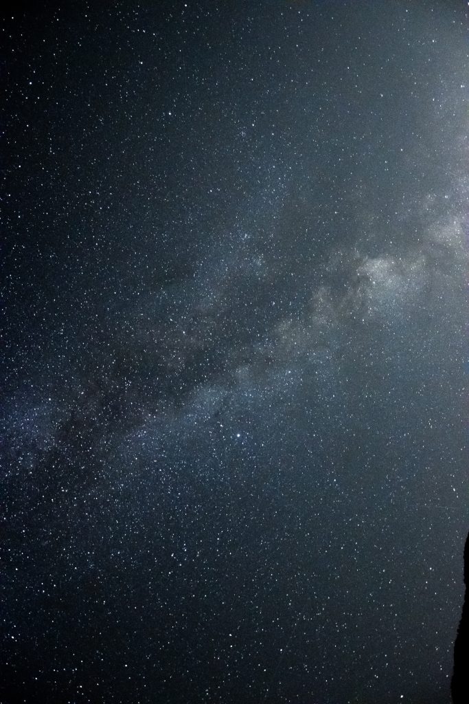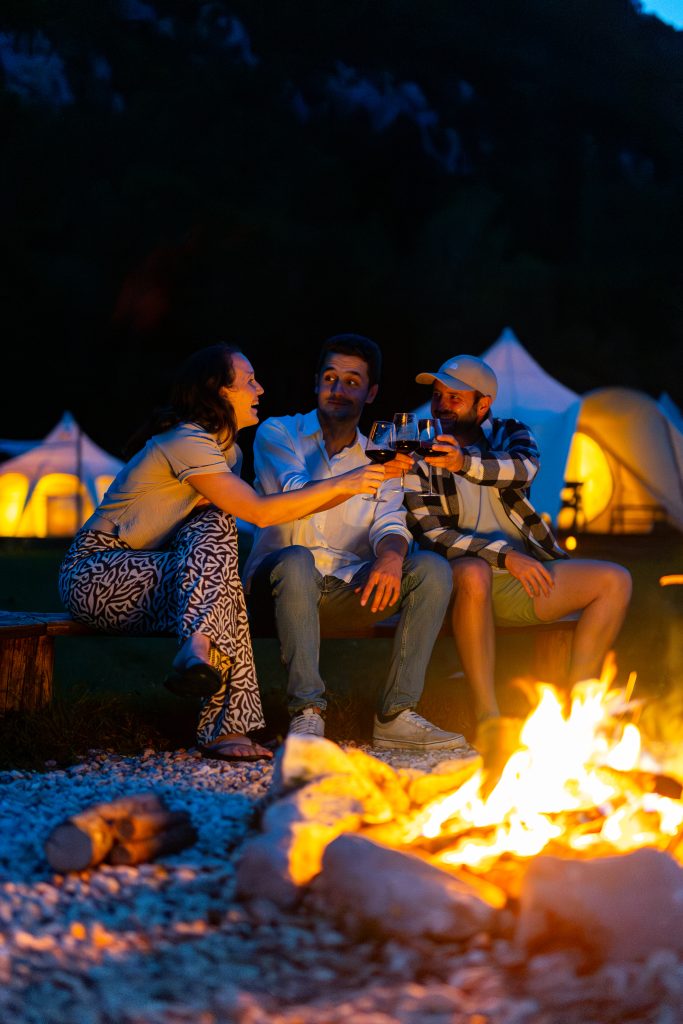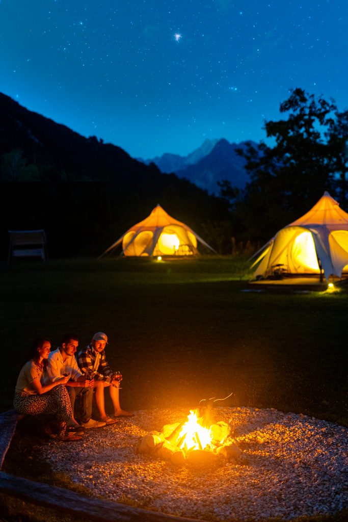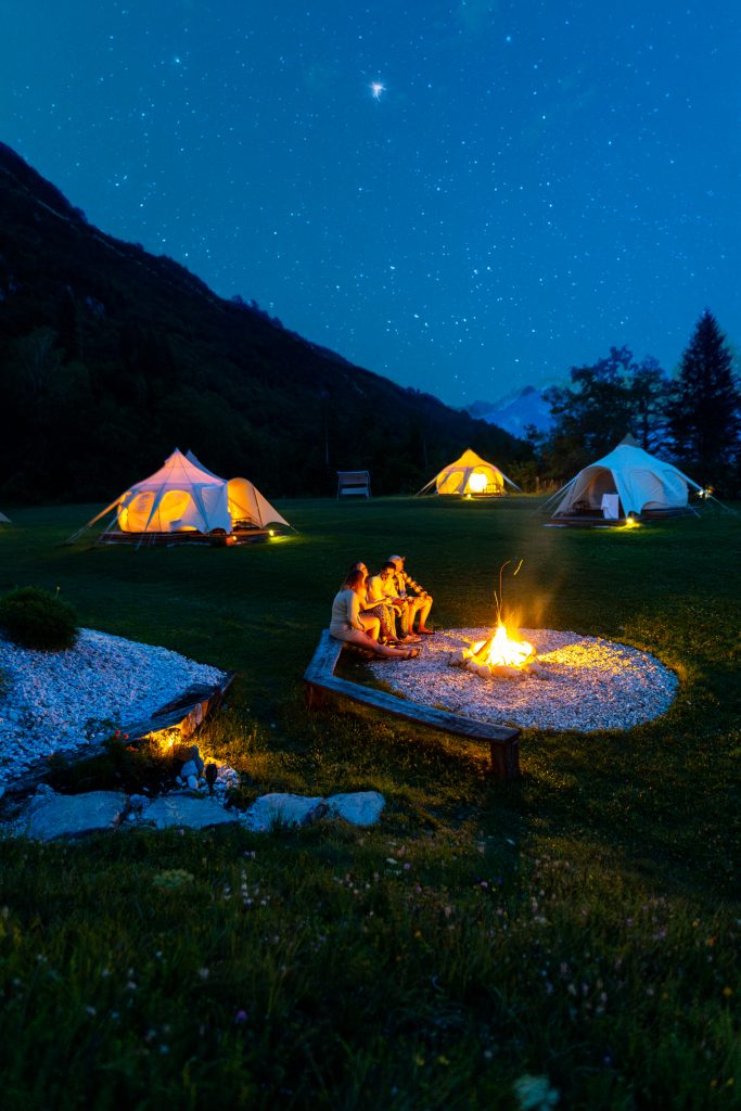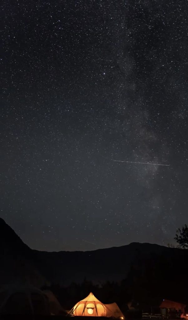 Ob jasnih nočeh se Rimska cesta razteza nad dolino, zvezde gosto posujejo nebo, reka pa postane tih, neviden spremljevalec. Nad glampingom je nebo zares temno, saj v bližini ni uličnih ali mestnih luči.